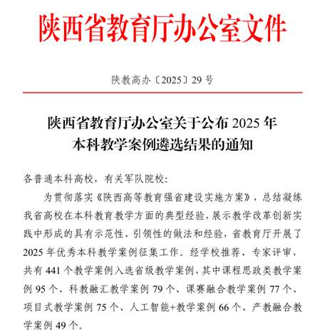 近日,陕西省教育厅发布了2025年省级本科教学案例名单。成人直播