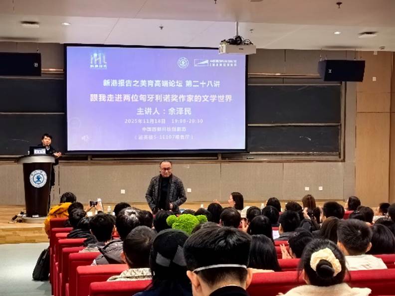 创新港校区涵英楼报告厅成功举办。本次论坛以“跟我走进两位匈牙利诺奖作家的文学世界”为主题,特邀余泽民教授担任主讲嘉宾,余教授是旅匈作家、匈牙利语翻译家,中国作家协会会员。他先后翻译包括2002年诺奖作家凯尔泰斯、2025年诺奖作家克拉斯诺霍尔卡伊多部作品在内的近三十部作品,被匈牙利政府授予“匈牙利文化贡献奖”,被称作“当代匈牙利文学的中国声音”。成人直播