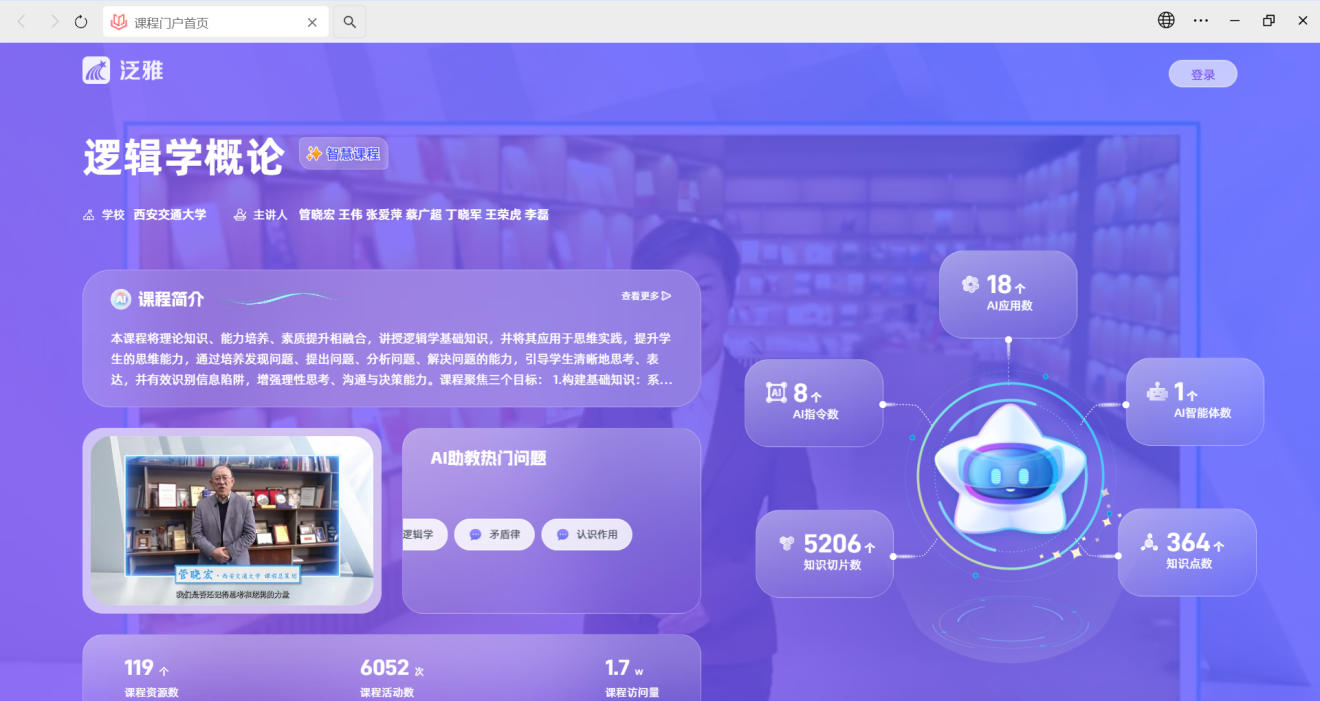 在其中发挥了重要的引领与示范作用。下一步,该课程团队将在省教育厅和我校教务处的支持下,继续深化教学改革,推动“逻辑学概论”课程的持续更新迭代与跨校建设推广,为强化我省学生的综合素养与核心思维竞争力贡献交大智慧与力量。