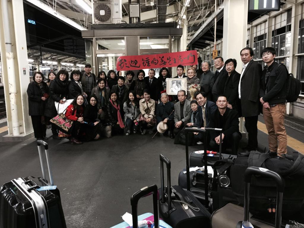 高崎书道会携金泽子卿先生遗照在火车站迎接钟明善教授一行