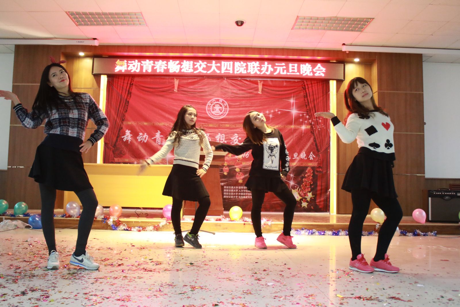 、软件学院、外国语学院、马克思主义学院联合举办的“舞动青春·畅想交大”2016年元旦晚会在就业指导中心一楼报告厅如期上演。校学生工作部部长尚春阳、就业指导中心主任郑旭红、成人直播