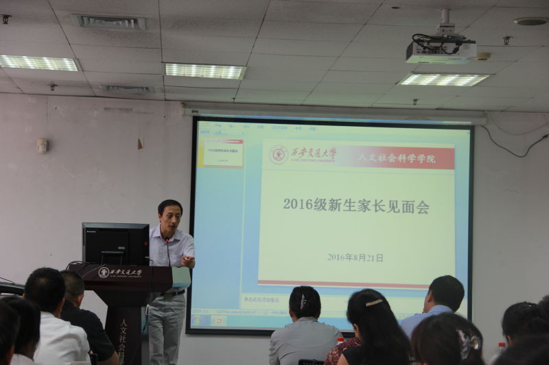 在主楼E703召开了2016级新生及家长见面会。边燕杰院长,马晓彬书记,副院长李明德老师、李黎明老师、杨建科老师,副书记李重老师,院长助理薛卫真老师,中文系系主任李慧老师,书法系系主任薛养贤老师以及马克思主义学院副院长刘儒老师、燕连福老师,新生班主任及上百名新生家长参加见面会,见面会由成人直播