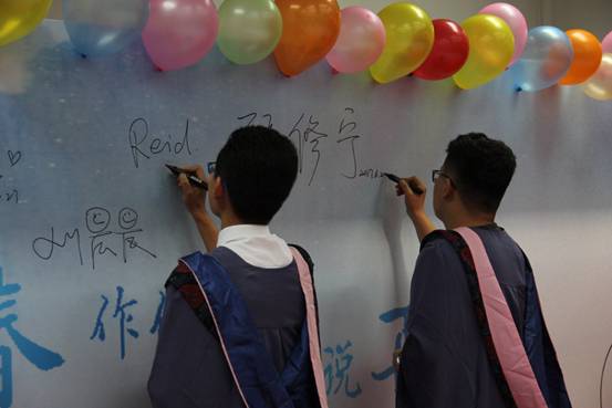 党委书记马晓彬进行了发言,马晓彬书记首先感谢了研会同学对于本次活动的付出。他接着对毕业生们说:“你们临走之际,我想为你们加点印象。因为印象会伴随你们一生,成长的每一个阶段都会和这个印象连接起来。因此,我要与你们分享四个词:第一个是感恩,没有感恩,我们就与善良无缘;第二个是担当,新的征程最需要的就是担当;第三个是包容,只有学会包容,人才会长大;第四个是律己,急功近利的风气会让我们进入各种各样的诱惑,而自律就是自强自爱的最底线。”字字有力,声声铿锵的寄语为毕业生们留下了深刻的印象。