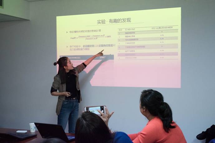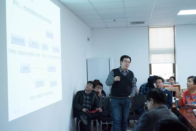 道德心理学实验室的赵靓、杨沈龙、牛更枫、李占星四位青年教师依次报告了自己的最新研究成果。赵靓老师讲述了她所做的通过微博大数据的自然语言处理,来动态地分析和预测微博用户的心理压力水平及变化趋势的研究。杨沈龙老师基于系统合理化理论,介绍了他所揭示的社会阶层预测系统合理化的双重心理机制模型。牛更枫老师立足于网络心理学的前沿热点问题,基于社会适应视角揭示了社交网站中的自我呈现和社会比较之间的心理作用模型。李占星老师围绕着心理所有权这一领域,探讨了幼儿和成人在判断坏人所有权问题时的心理差异。每一个报告都激发了参与师生的强烈兴趣,讨论非常热烈。