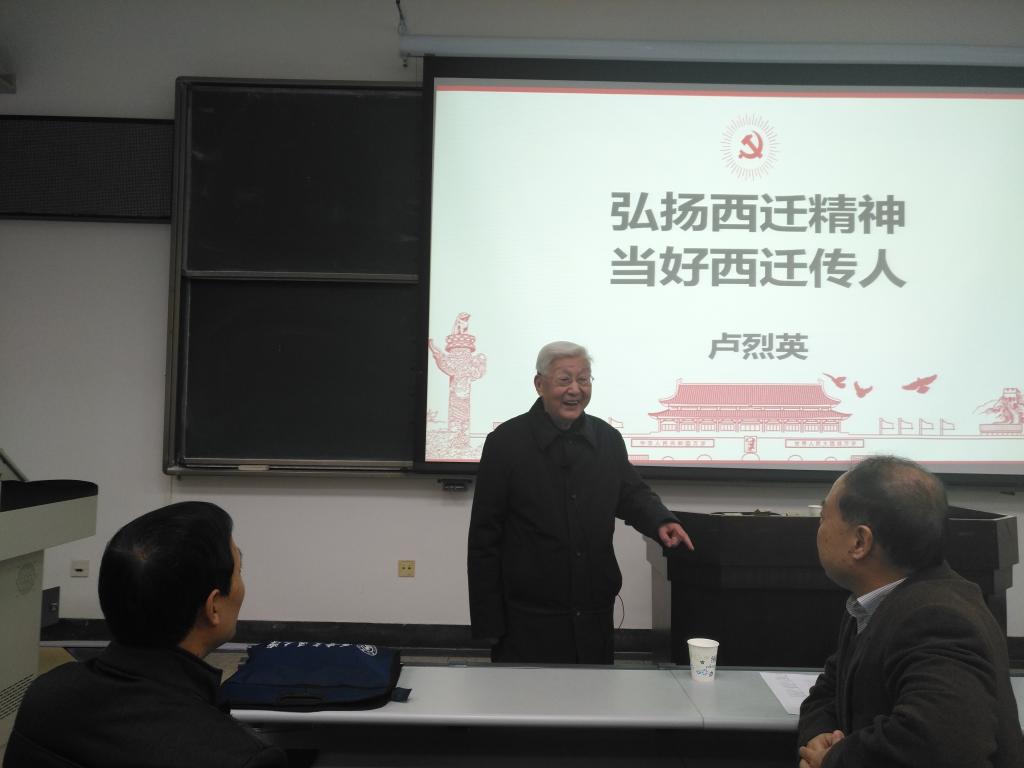 卢烈英教授认为西迁精神的要义有三点,一是大局为重,二是勇于担当,三是艰苦创业。以大局为重,就是要服从集体利益和国家利益,听党的话,祖国需要我们到哪里,我们就去哪里,哪里发展需要我们知识分子,我们毫不犹豫的奔赴前线。勇于担当就是要主动肩负起学校发展、西部发展、国家发展的重任,敢于将强烈的使命感和责任感化作实践的动力,为西部教育事业做出自己的贡献。艰苦创业就是要不怕苦、不怕累,在有限的条件中主动作为,积极创造和争取条件资源,努力克服前进中的各种困难。