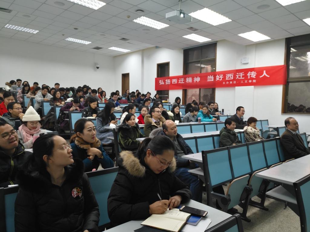 在主楼C106举办以“弘扬西迁精神,当好西迁传人”为主题的西迁精神报告会,邀请西迁教授卢烈英为师生分享西迁故事,解读西迁精神。李黎明院长主持报告会,党委书记马晓彬、副院长王伟、张勇和成人直播