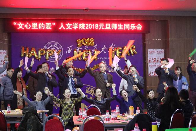 最后,本次晚会在学院领导和行政老师的歌曲串烧中圆满落幕。祈盼2018,愿你我携手共进,齐心协力,为人文之光,为世界之光!