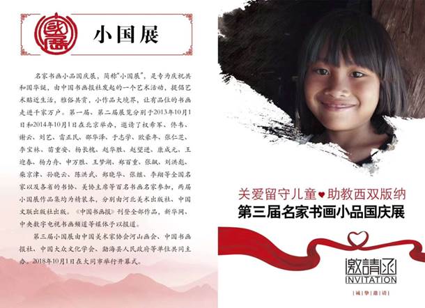 关于社会活动,我想当一个人在关注自我的同时,还要关注这个社会发生的变化,不能“两耳不闻窗外事,一心只读圣贤书”,一定要处在学术的前沿,另外还要有些家国情怀,比如,我参与了几次捐赠作品的活动,中国大众文化学会、中国书画报社举办的“全国第三届国庆小品展”,为的就是西双版纳勐海县的百万助学金的书画公益行动,我希望捐献自己的一份爱心,为祖国文化传承贡献自己一点微薄之力。