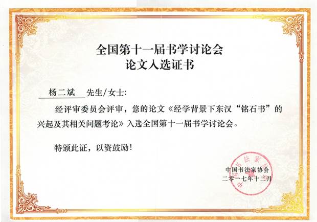 ,自己的研究方向更加清晰,明确,所以撰写了多篇论文参加全国的书学论坛,2017年我的《经学背景下东汉“铭石书”的兴起及其相关问题》入选了全国第十一届书学讨论会,《论楷书书体的渊源、范式及流变》入选全国《龙藏寺碑》楷书发展学术论坛,《"草"、雅化、接受--关于草书的几个点性研究及其对于当代草书继承与发展的启示》入选首届怀素草书学术论坛,这三个论坛都是中国书法家协会举办的,在第二届陆维钊书学研讨会中我获得全国唯一的“陆维钊奖”,这是中国高等教育学会和中国美术学院举办的!我只是在学习的同时把结课论文和自己的研究重点结合起来,遇到相关的论坛才投稿的。我想或许这个方法可以借鉴。