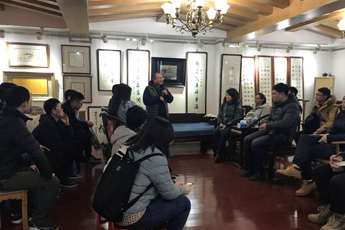 11月15日晚7点,第9期“真人图书馆”在书院门国根笔庄书香四溢的陈列室中拉开序幕,二十余位老师和同学一起认真聆听了雷亿锋掌柜关于文房四宝的讲解。活动由成人直播