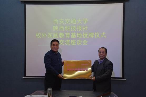 新闻与新媒体学院院长李明德教授为陕西科技报社授予“校外实践教育基地”。李明德在致辞中表示,此次授牌,西安交大新闻与新媒体学院与陕西科技报社作为一个共同体,将用合作的成果,密切之间的关系,用合作的经验,提升双方的共赢的内涵。为人才的培育蓄谋,让人才的培养落到实处,不断调整培养方案,优化专业设置。这意味着成人直播