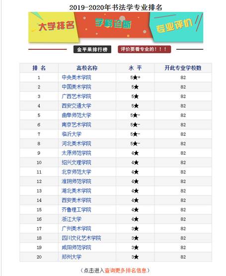 书法专业在2019-2020年中国大学本科教育分专业排名中喜获佳绩,消息来源于中国科学评价中心,首次发布时间为2019年3月16日,附网站查询结果截图和链接。