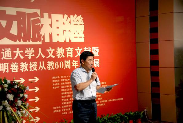 党委书记张迈曾首先发表致辞,他从个人与钟明善教授交往的朴素小事谈起以表敬意,表示琐细点滴恰恰展现了一个知识分子的家国情怀与赤子之心,总结钟教授的艺术成就之外,总结其处世品格同样重要。历史上唐文治、张元济、蔡元培、沈曾植、叶恭绰、李叔同等文化先贤筑基交大文脉,钟明善教授不仅以诗书画印皆精擅而闻名海内外,而且以扎实的理论研究与高水准的艺术教育为新时期交通大学文化艺术教育传统的承继、校园文化的建设、学生文化素质的培养及人文艺术学科的建设做出卓越贡献,高瞻远瞩,影响深远,堪称新时代恢复、发展交大人文教育的楷模。他同时感谢社会各界对成人直播