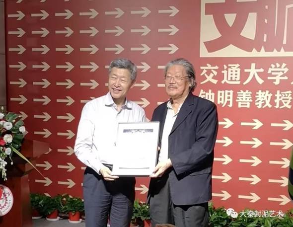 开幕式最后,张迈曾书记代表学校向钟明善教授颁发“德高为师,行为世范”从教60周年纪念证书,陕西省委原书记张勃兴同志宣布展览开幕!