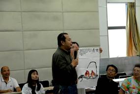 人文社会科学学院中国书法系系主任薛养贤教授的主持下,与会嘉宾围绕交通大学人文艺术历史积淀与钟明善教授从教60周年进行了充分的探讨,并就“书法与人品”、“书法与高等教育”、“书法与姊妹艺术”三个议题展开思想交锋。