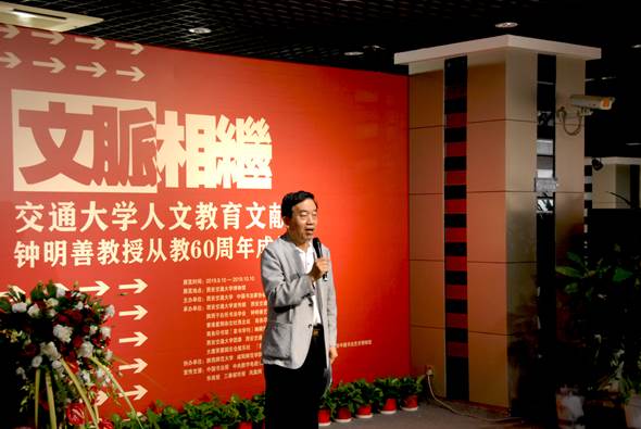 2019年9月10日,适逢新中国七十华诞与第三十五个教师节,彩带当空,幕墙殷红,几个主题大字格外引人注目,“文脉相继——交通大学人文教育文献暨钟明善教授从教60周年成果展”在成人直播