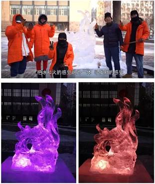 本次比赛要求参赛队伍在长1.0米、高1.5米、厚度0.5米的冰块上进行限时创作,要求选题具有时代特征,能够展现大学生的精神面貌。在校团委的支持下,我校成人直播