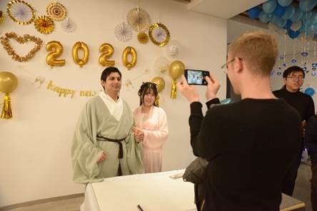 临近零点,同学们齐聚涵英楼南广场参加灯光点亮仪式,一起期待2020年的到来。在最后十秒钟倒数后,伴随整栋大楼被点亮的同时,同学们大声对周围的人喊出了“新年快乐!”,热情的声音久久回荡在创新港的上空。