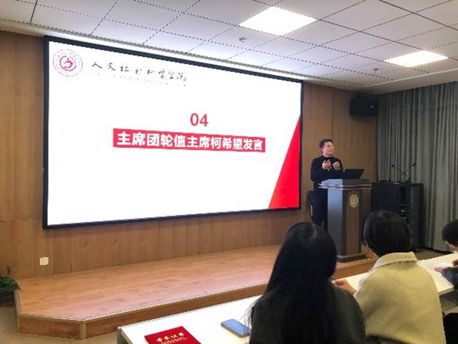 主席团轮值主席柯希望进行了发言,他热烈的欢迎了各位新成员的加入,并对大家之后的工作做出了几点期望。首先,作为学生会成员要做好服务者工作,同时更要学会成为一个组织者,在关键时刻挺身而出,成为第一推动力;其次,人文研会作为成人直播
