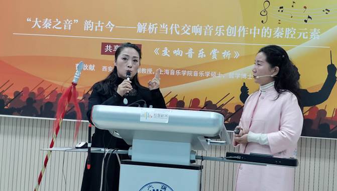 为了落实教育部和国务院下发的关于课程思政及美育教育指导精神,陕西省首批在线精品课程《交响音乐赏析》的全国见面课,继“中西相融合,梁祝诉衷肠”、“中国特色交响音乐赏析”、“国之精粹京剧与交响乐”、“长城乐奏民族魂”等的专题之后,以“‘大秦之音’韵古今——解析当代交响音乐创作中的秦腔元素”为主题,开启了本学期《交响音乐赏析》线上线下混合课的第三次全国见面课。