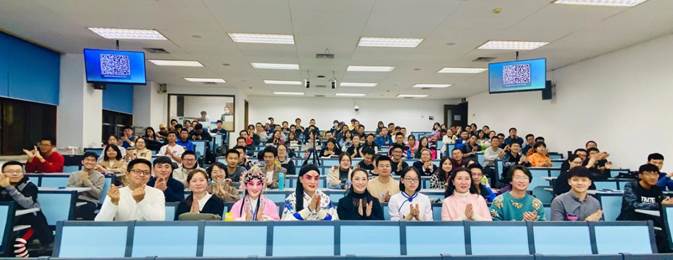 课程的最后,邵英老师与其团队的成员李群、冯金巧老师现场表演了“秦腔表演荟萃”,同学们近距离的欣赏到了秦腔优美的唱段,也观赏到了了“水袖”、“舞枪花”、“舞扇子”、“舞手绢等表演。