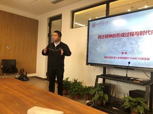 硕0115和0116团支部围绕“党建带团建 推进党团班一体化建设”、“讲校史 忆西迁 学‘四史’ 爱家国”、“绘就文明底色 传扬西迁精神”、“大手拉小手 书信传温暖”、“Stand by her予她同行”和“以我之心温暖你”等内容,开展“不忘初心担使命 人文奋进创未来”主题团日活动,集中展示了支部成员的家国情怀、爱校热情和奉献精神,坚定了听党话、跟党走的信念。